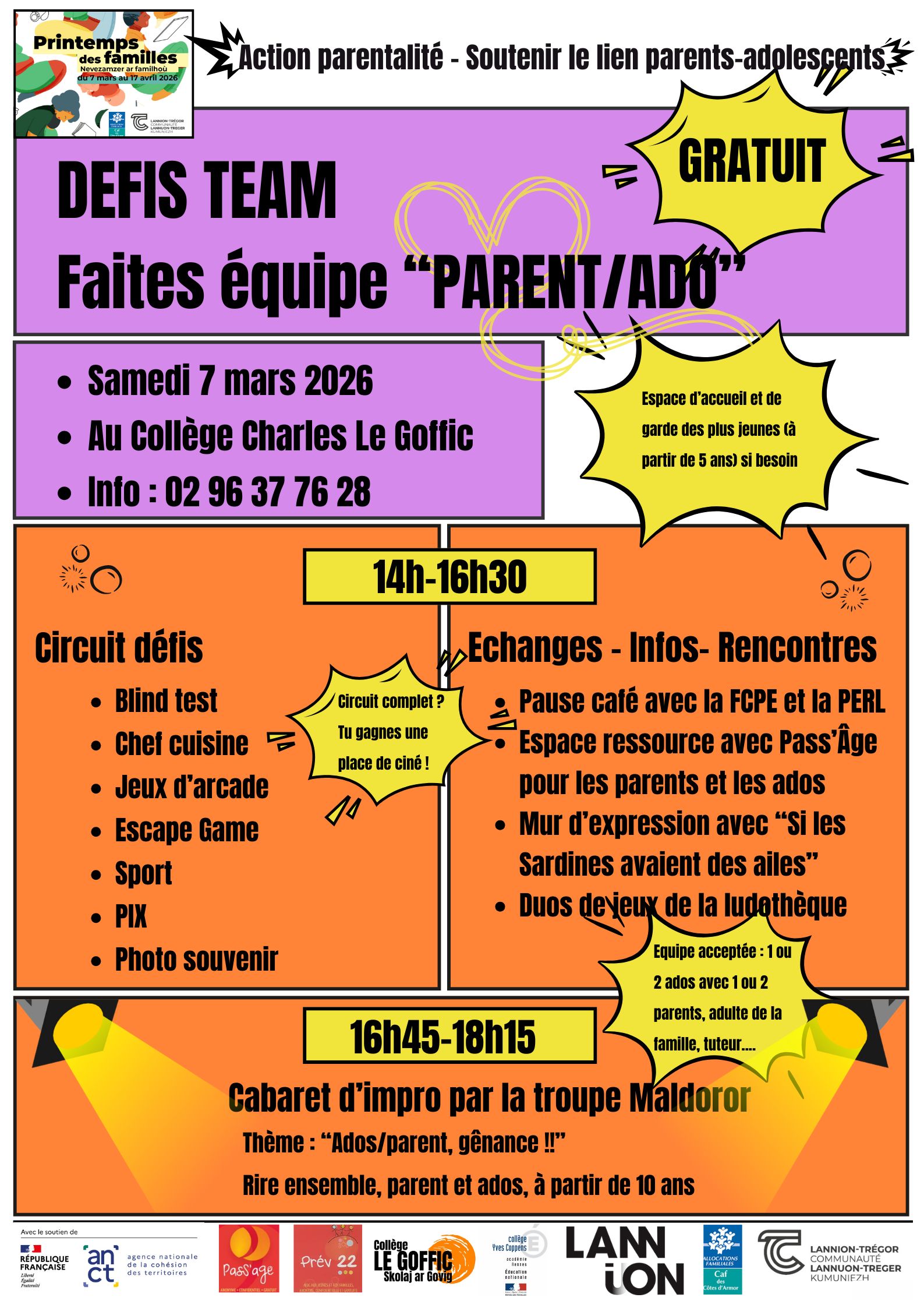 Le local jeune ainsi que les partenaires oeuvrant pour la jeunesse vous accueillent au college Charles le goffic ce samedi 7 mars de 14 à 18h15.